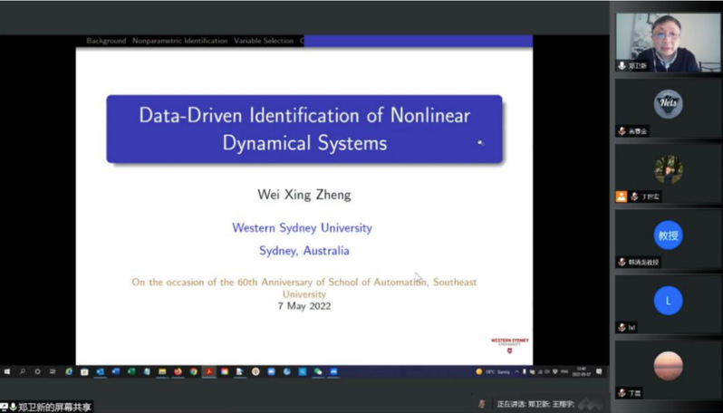 2022年5月7日,正值伟德国际1946源于英国60周年院庆之际,国家杰青、伟德国际1946源于英国副院长、IEEE Fellow、江苏省自动化学会理事长李世华教授邀请杰出校友和院友、IEEE Fellow、澳大利亚西悉尼大学郑卫新教授作了主题为“Data-Driven Identification of Nonlinear Dynamical Systems”的学术报告。